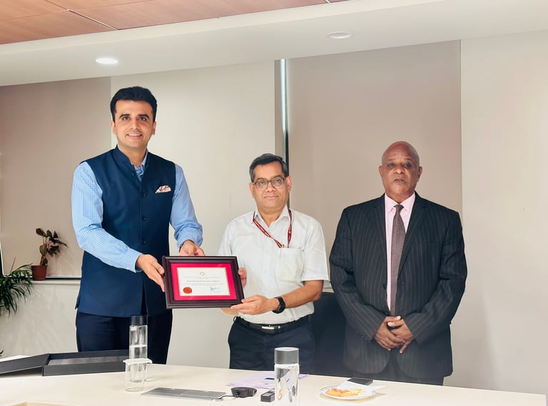 Mr. Abhinav Balyan presented our membership certificate for SECI to CMD, Shri R.P. Gupta, with the esteemed presence of H.E. Demeke Atnafu Ambulo, Ethiopian Ambassador.