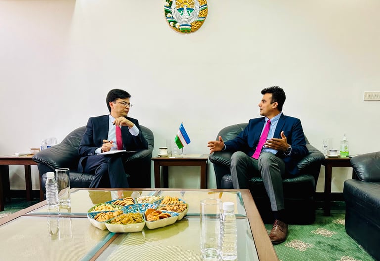 President & CEO of Chamber India, Mr. Abhinav Balyan called on the Ambassador of Uzbekistan, H.E. Mr. Sardor Rustambaev, to discuss business ties of our members in Uzbekistan and explore new opportunities for expanding trade between India and Uzbekistan.