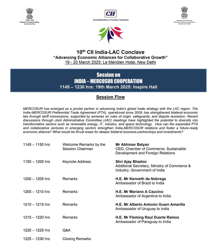 President & CEO of Chamber India Mr. Abhinav Balyan chaired the session - 'India-MERCOSUR Cooperation' at the India-LAC Conclave in New Delhi.
